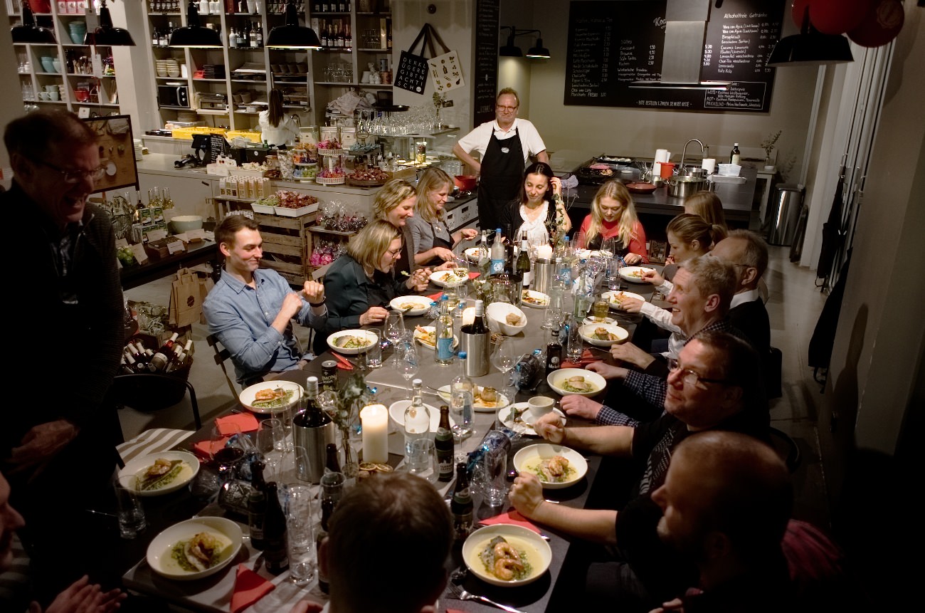 Our Team enjoyed a great cooking evening with a wonderful menu and exquisite drinks. The Kochhaus is a concept store, where people get inspiration for their next diner at home. Depending on the amount of people they are cooking for, you can buy the exact amount of ingredients needed. With locations in some major cities in Germany it is quite popular amoung singles, who do not need getting large amounts of every ingredient.